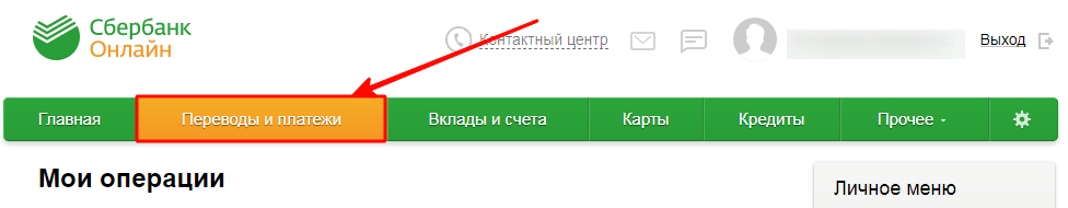 Наиболее частый способ проведения платежей через личный кабинет Сбербанка. Поэтому разберём подробно данный вариант оплаты.